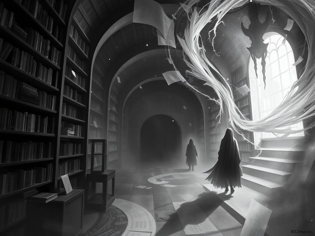 Recovered from among the decaying records of the Hollow Archive, this fragment speaks with a voice half-lost to time. The Black Dog Tavern presents it here as found, a transmission from the edge of memory — where the Echo hums and the last custodians of reality whisper against the dark.